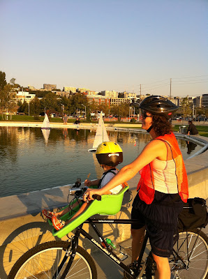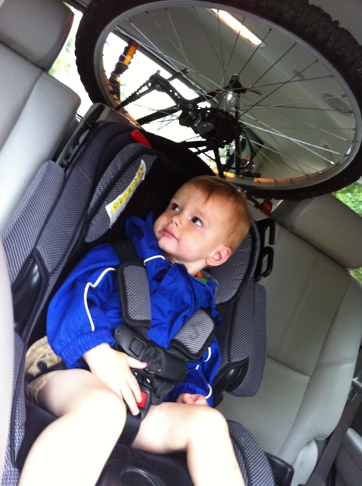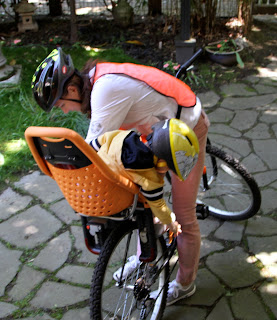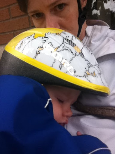 I did not like to see him looking like a bobble-head on my handle bars. He was still supported only by the chair with no support for his head and neck. His head bobbed up and down and back and forth with the motion of the bike. It is freaky. For me, I think he needs to be an active participant in the bike ride and if he is asleep, I need to be even more protective of him. I could feel the mommy protection instinct bubble up. I had to call for a rescue.