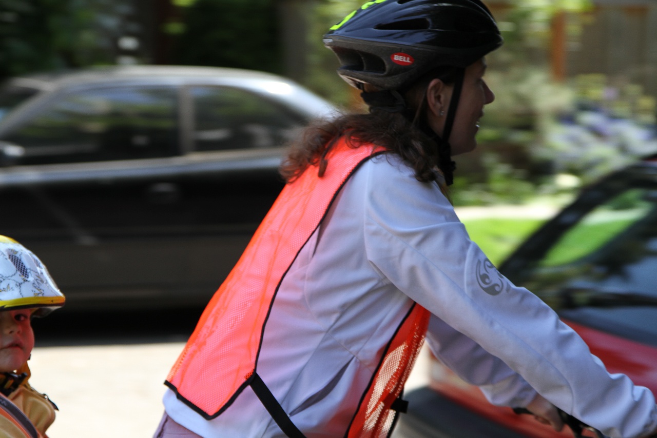 Riding by myself I found that I was a little more aggressive and a little more impatient. There is a long traffic light on my route. With a baby on my handlebars, I have no trouble stopping when the light is yellow. Without a baby, I went on the yellow. I do not think I was in violation of any laws, it looked safe and technically I was in the right but I would not chance it if my son was with me. It surprised me how differently I approach the same situations when I am solo.