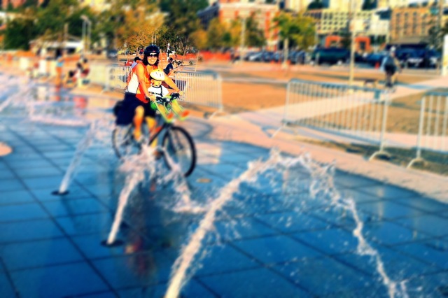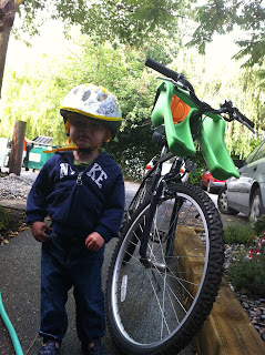 It is gray and feels like rain. This is demotivating for a bike ride. My reasons for bike commuting are exercise, getting outside, enjoying the summer and spending time with my baby boy.