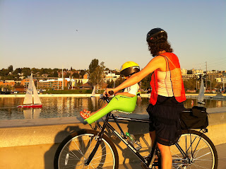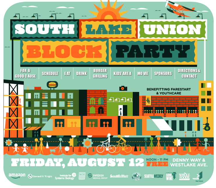 This Friday I hit my stride. I needed to be at work early and I had a long day ahead of me. It was a gray morning and that didn't even bother me. Even so, I found myself prioritizing the bike commute. I did not consider driving the car a good option. I am really getting a lot out of riding my bike: the exercise, fun times with my son, and discovering new things in the neighborhood. There is an annual South Lake Union Block Party and every year I try to go, and every year I forget. On my ride, I saw volunteers setting up for the block party and this is the first year I made it to the party!